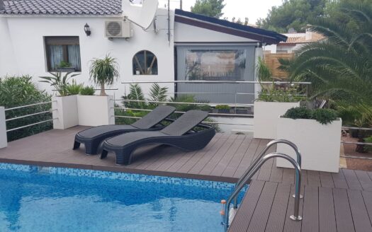 Wunderschöne Villa in der Montgó, campusos Bereich mit spektakulärem Blick auf Dénia und das Meer. Das Chalet hat eine Fläche von 140 m2 verteilt in 3 Schlafzim ...