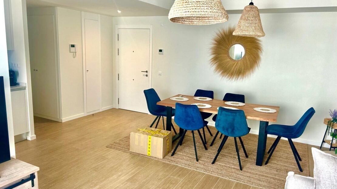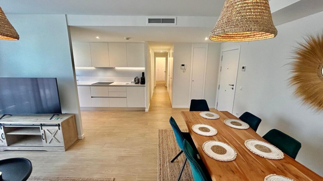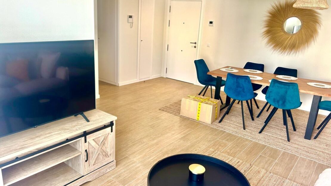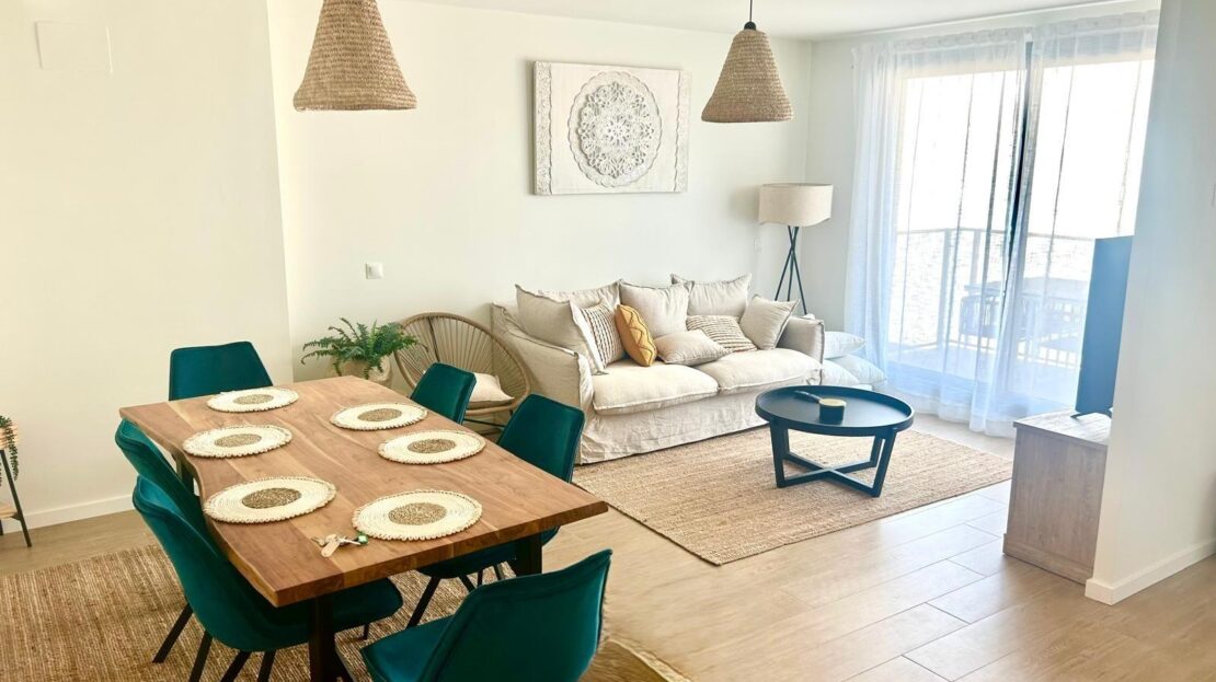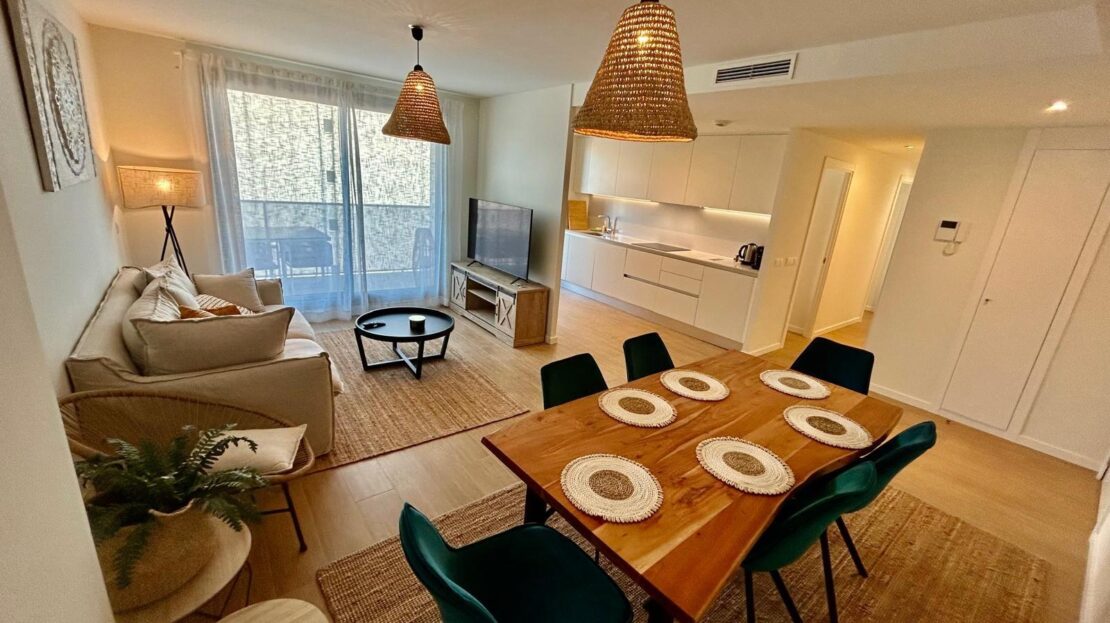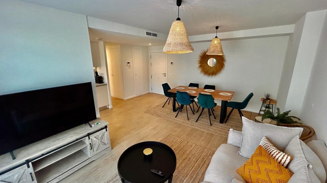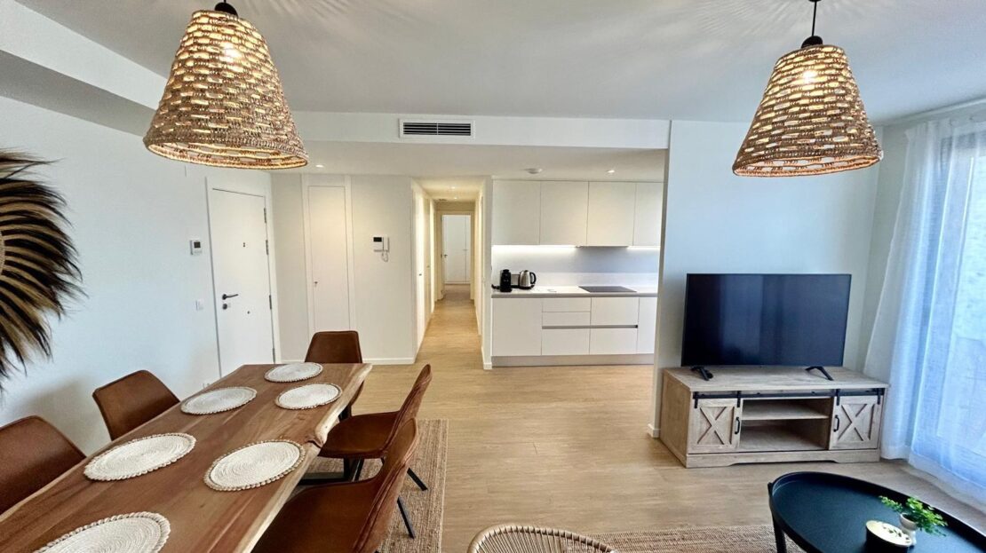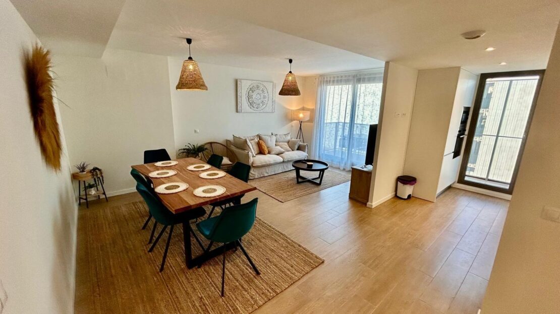 Entdecken Sie diese geräumige und helle Neubauwohnung in perfekter Lage, nur 5 Gehminuten vom Zentrum von Dénia und dem Yachthafen entfernt. Im ersten Stock gelegen, kombiniert diese Immobilie Komfort und Design in jedem Detail. Die Wohnung verfügt über ein offenes Wohn-Esszimmer, das mit einer modernen, offenen Küche mit allen Geräten ausgestattet ist. Sowohl die Küche als auch das Wohnzimmer haben einen direkten Zugang zu einem geräumigen Balkon, der sich ideal für Mahlzeiten im Freien eignet, da es genügend Platz für einen Tisch mit vier Stühlen gibt. Auf dieser Terrasse befindet sich auch ein Abstellraum mit einer Waschmaschine und einem Wäschetrockner. Vom sonnigen Wohnzimmer aus gelangt man über einen Flur in den Rest der Wohnung: ein komplettes Familienbad, drei Doppelschlafzimmer mit Einbauschränken und ein Hauptschlafzimmer mit Bad en suite. Die Wohnanlage bietet hervorragende Gemeinschaftsbereiche wie zwei Swimmingpools, Gemeinschaftsgärten, einen Fitnessraum und Sozialräume. Darüber hinaus sind ein Tiefgaragenstellplatz und ein Abstellraum im Preis inbegriffen. Die Immobilie wird mit allen Geräten in perfektem Zustand verkauft, da sie weniger als ein Jahr in Gebrauch sind. Verpassen Sie nicht die Gelegenheit, in dieser spektakulären Wohnung in einer der besten Lagen in Dénia zu leben oder zu investieren, kommen Sie und besuchen Sie es!