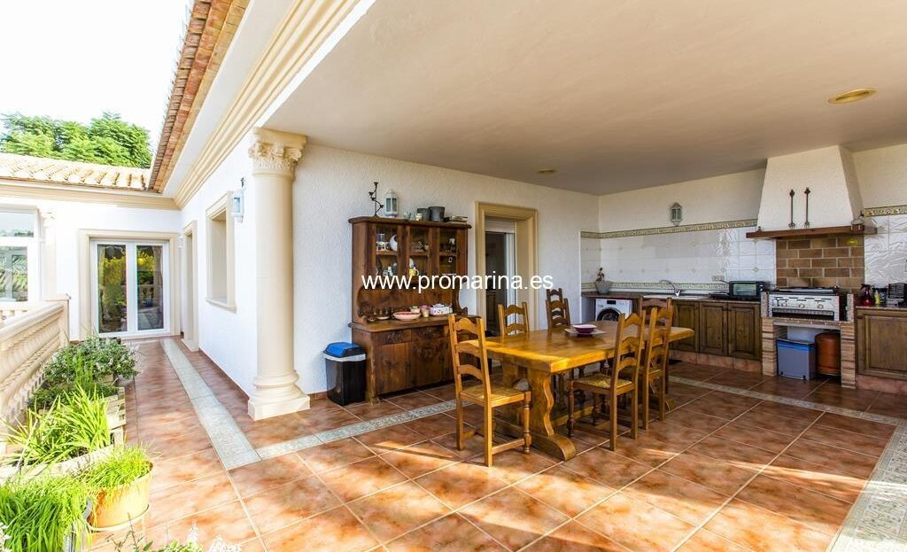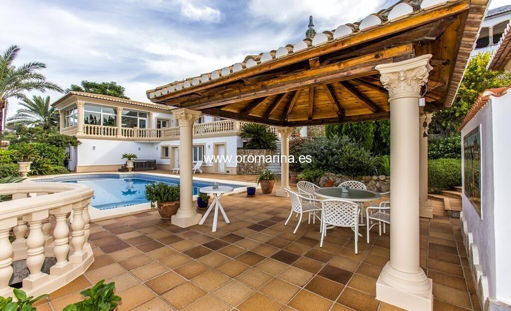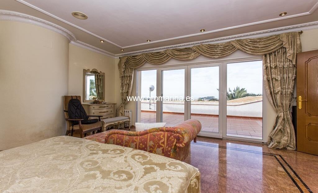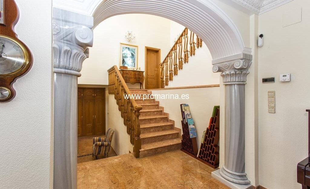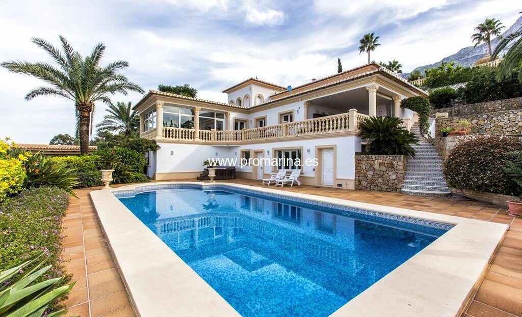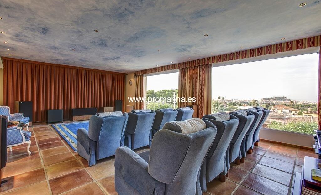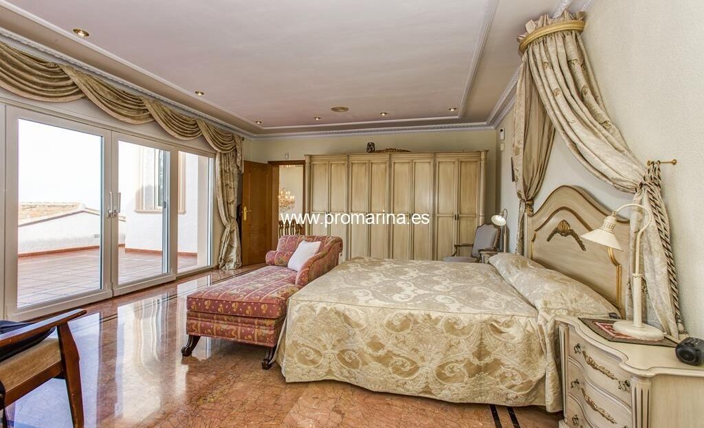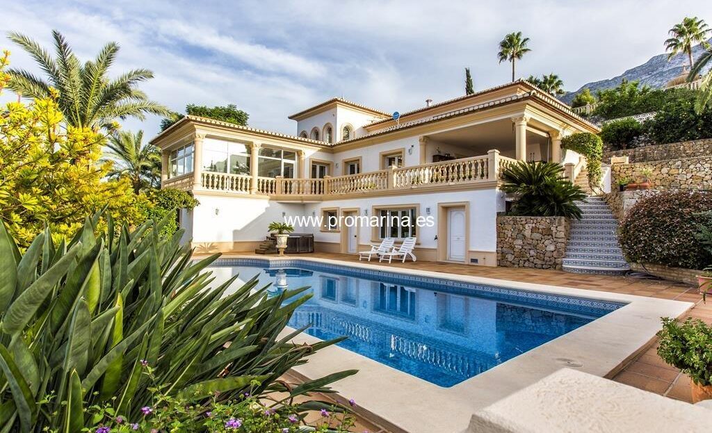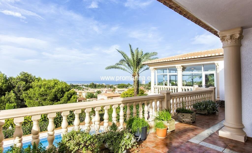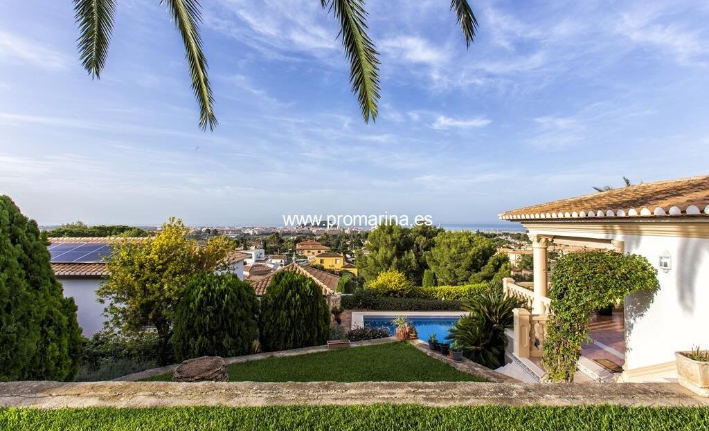 We present you this extraordinary luxury villa, located in an excellent area in Dénia, offering panoramic views of the sea and the city. With a constructed area of 628 m2 and a plot of 2.395 m2, this property is a perfect combination of elegance, comfort and privacy. The villa is distributed over three floors, providing ample and functional space for the whole family. Firstly, on the main floor, you will find an entrance hall, a guest toilet and a spacious living-dining room with a beautiful marble fireplace and large windows that connect to a glazed terrace.
