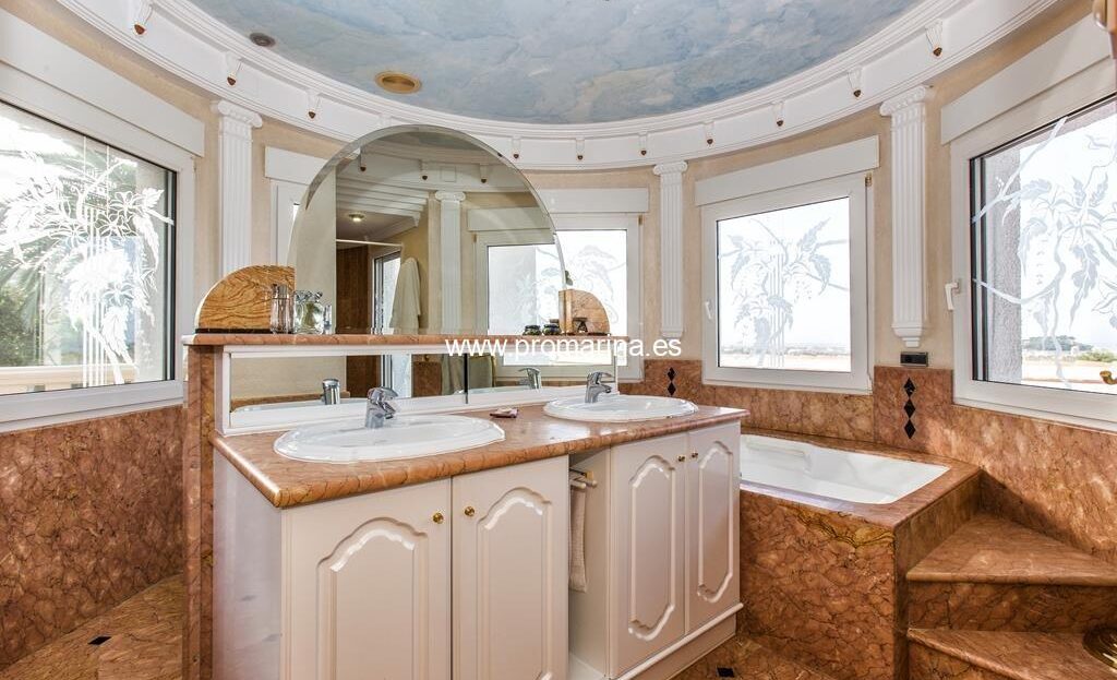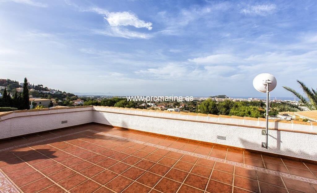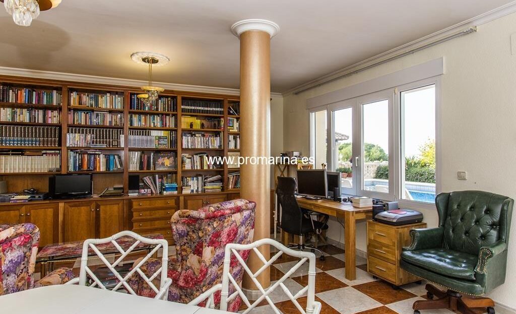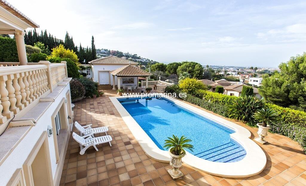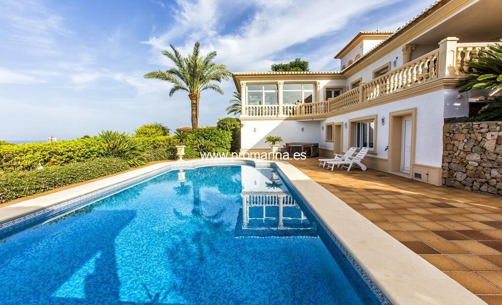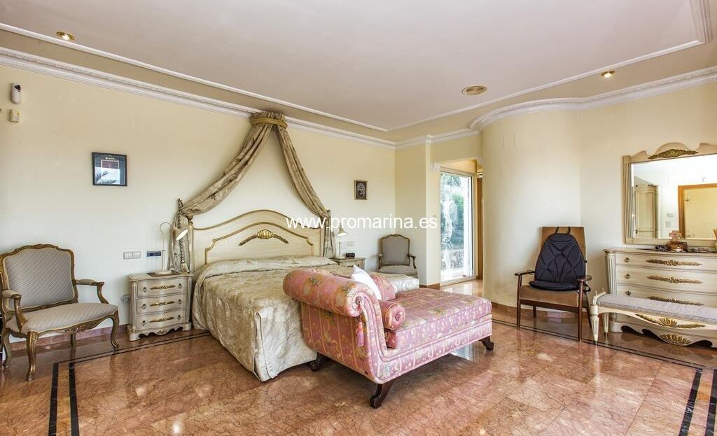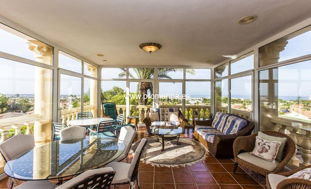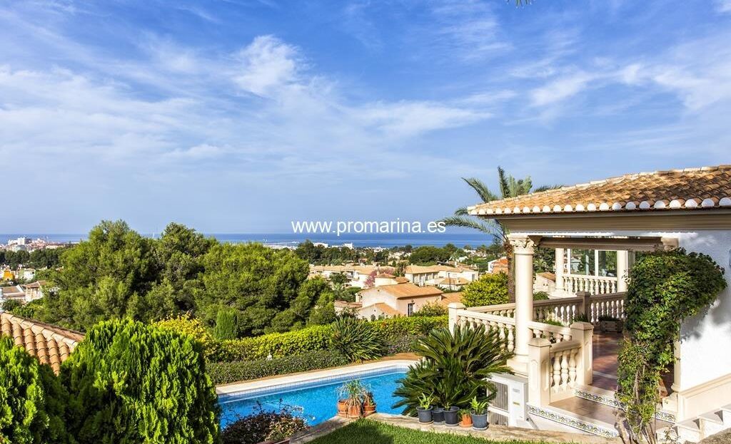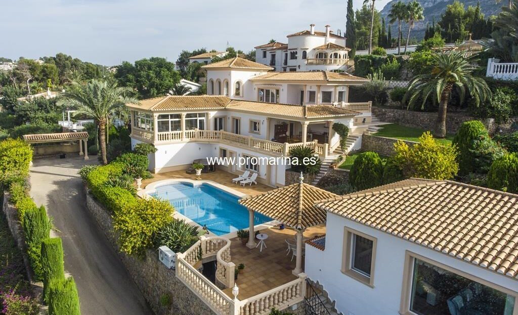 We present you this extraordinary luxury villa, located in an excellent area in Dénia, offering panoramic views of the sea and the city. With a constructed area of 628 m2 and a plot of 2.395 m2, this property is a perfect combination of elegance, comfort and privacy. The villa is distributed over three floors, providing ample and functional space for the whole family. Firstly, on the main floor, you will find an entrance hall, a guest toilet and a spacious living-dining room with a beautiful marble fireplace and large windows that connect to a glazed terrace.