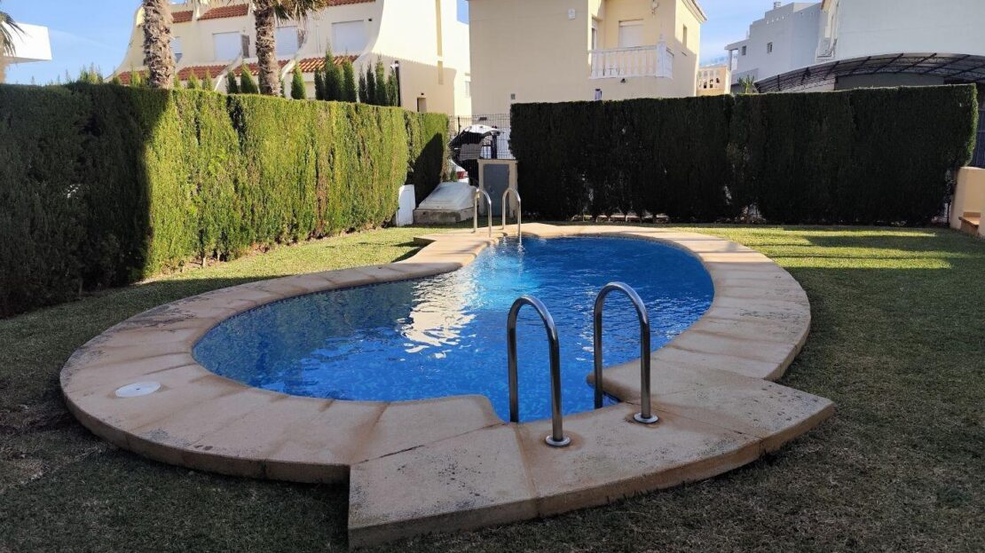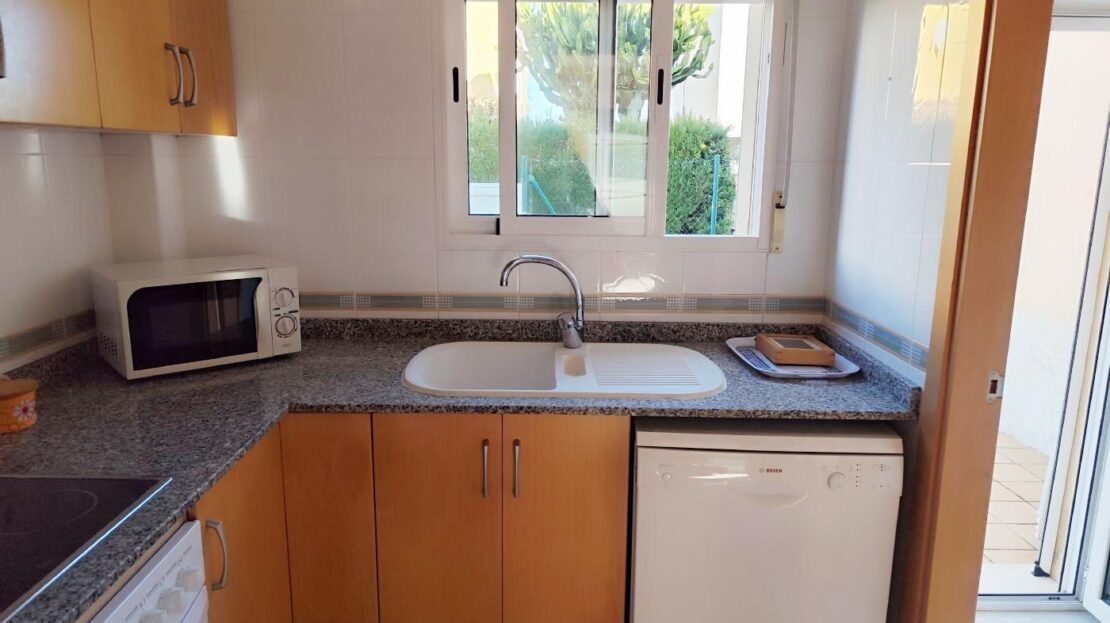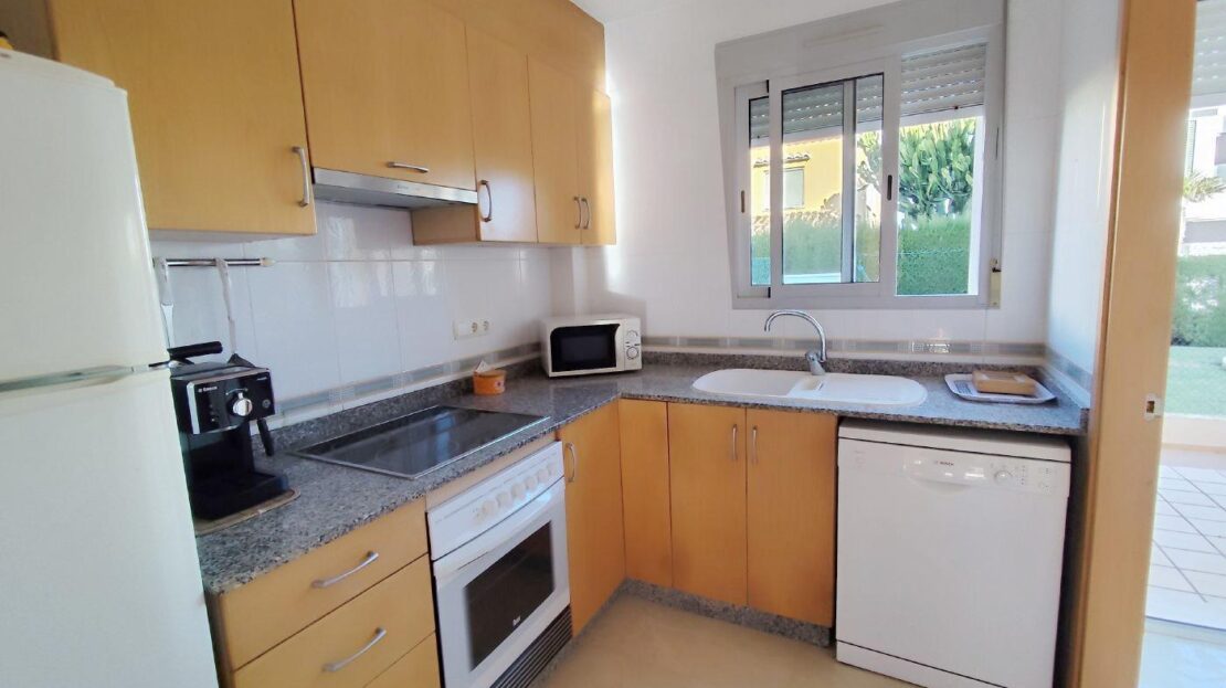 Let yourself be seduced by this wonderful flat located in the heart of Oliva Nova, where the Mediterranean unfolds its magic between golden sandy beaches and dreamlike landscapes. Here, elegance meets relaxation in an environment designed to make the most of every moment. This exclusive 85 m² flat is an exterior ground floor apartment with two spacious bedrooms and two modern bathrooms, as well as a functional and welcoming design. The independent kitchen, equipped with everything you need, connects to a private terrace that leads directly to the swimming pool, an ideal spot for your moments of disconnection. And as if that weren’t enough, the living-dining room opens onto a large south-facing terrace, where the Mediterranean sun will be your daily companion. The exclusivity of this property is also reflected in its surroundings: a private community of only four neighbours located in a cul-de-sac, a real haven of peace for those who value tranquillity and privacy. But that’s not all. The prestigious golf course and the stunning natural beaches of the area are just a stone’s throw away. In addition, the proximity to the centre of Oliva allows you to enjoy essential services and excellent connectivity, without renouncing the tranquillity of this unique enclave. Whether it’s golfing, strolling along the beach or simply relaxing on your terrace overlooking the Montgó and the horizon, this flat is the opportunity you’ve been waiting for to experience the essence of the Mediterranean.