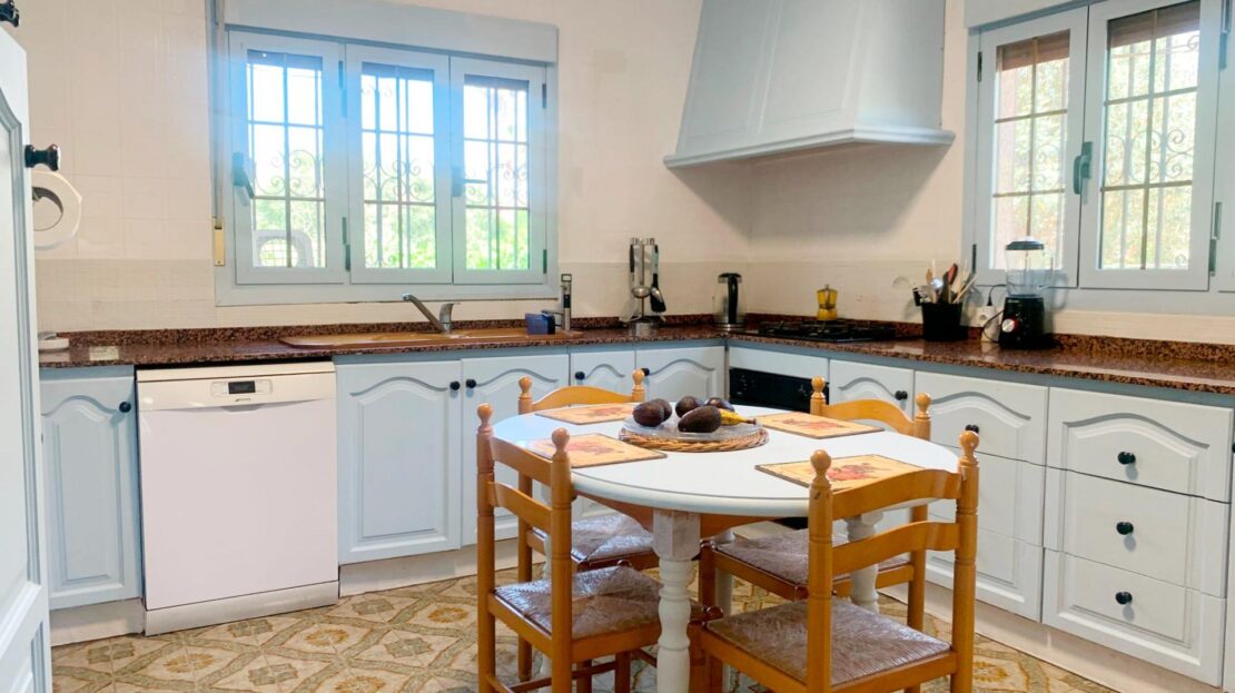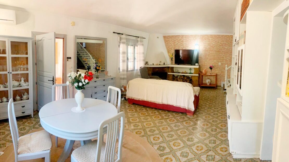 La vivienda cuenta con 330 m² y se distribuye en dos plantas. La planta baja consta de amplio salón comedor con chimenea, gran cocina independiente y equipada, un baño y dormitorio de invitados con baño completo. En la planta superior tenemos 3 dormitorios dobles con un baño compartido y un despacho.
