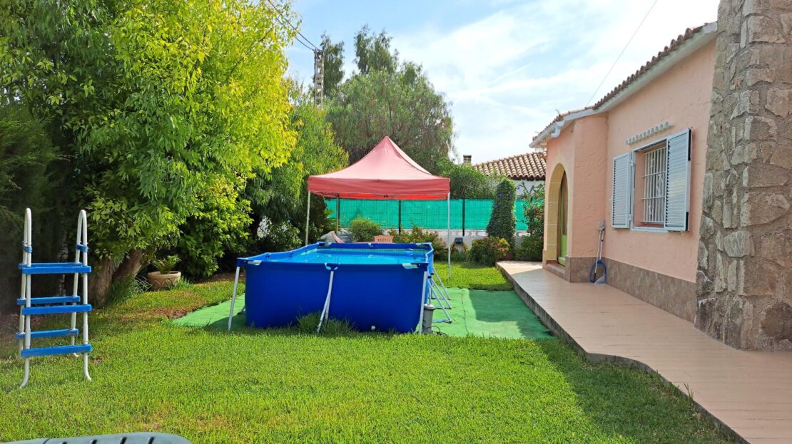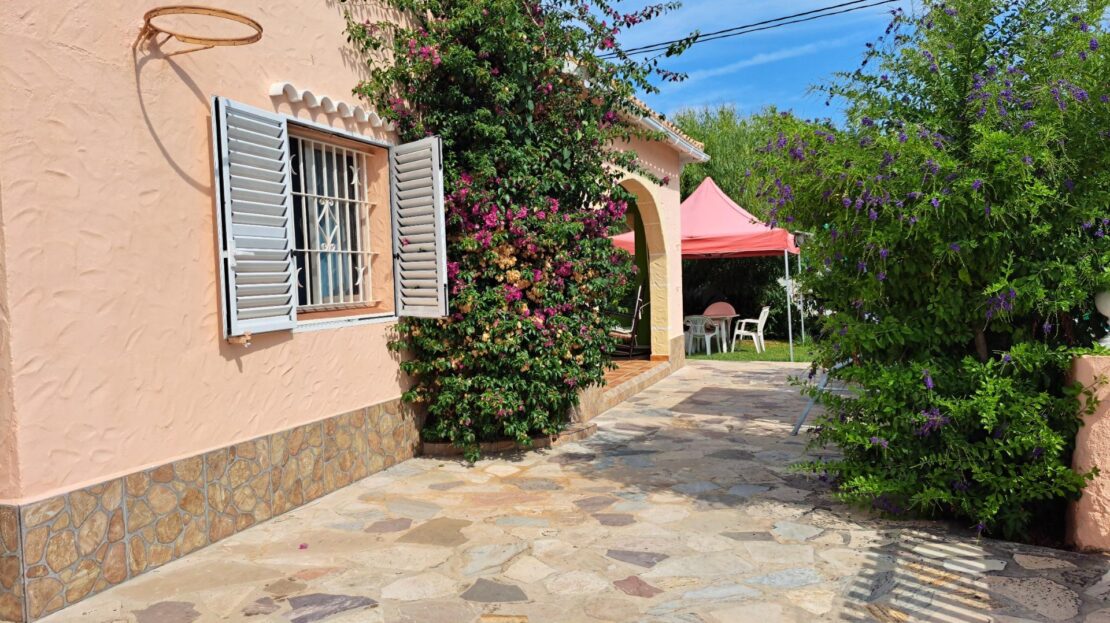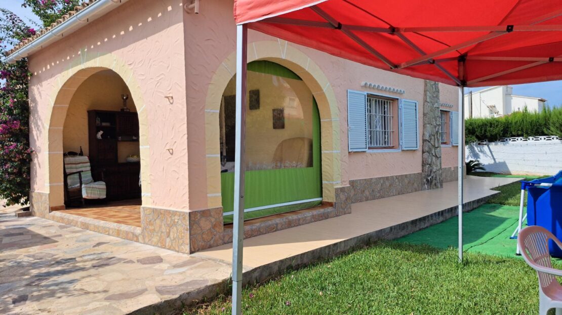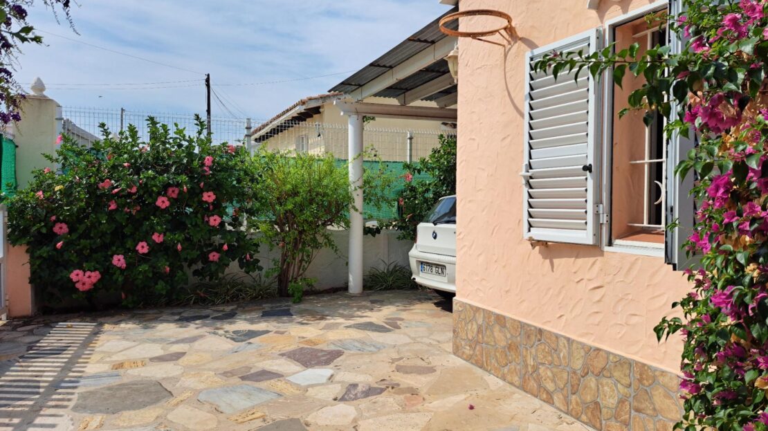 Chalet en venta en la Almadrava, Els Poblets (Alicante). ¿Sueñas con vivir cerca del mar? ¡Este chalet en Dénia es justo lo que buscas! Ubicado en la encantadora zona de la Playa de la Almadrava, a solo 200 metros del mar, te espera esta hermosa vivienda de 105 m² construidos en una sola planta, rodeada por una parcela de 391 m².