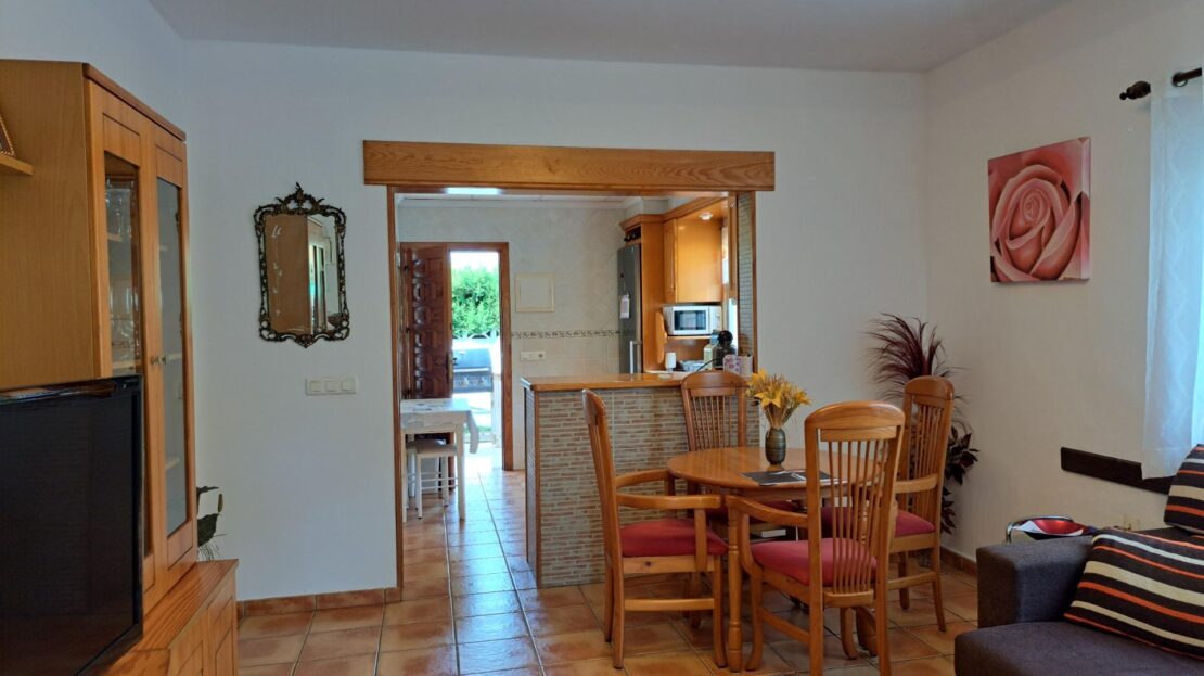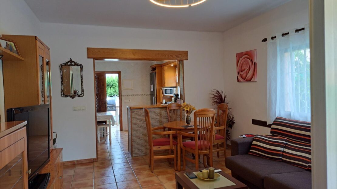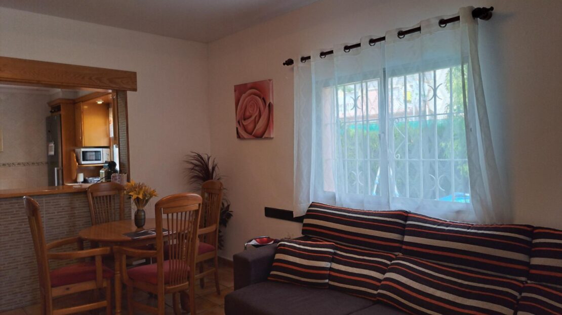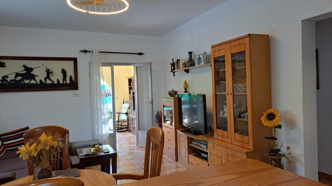 Interior acogedor: Salón comedor amplio y luminoso, una cocina semiabierta con barra americana, completamente equipada, 3 dormitorios dobles y un baño completo.