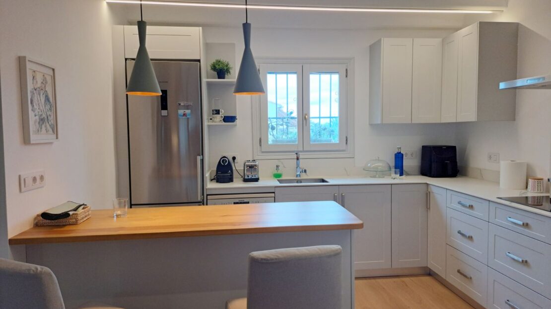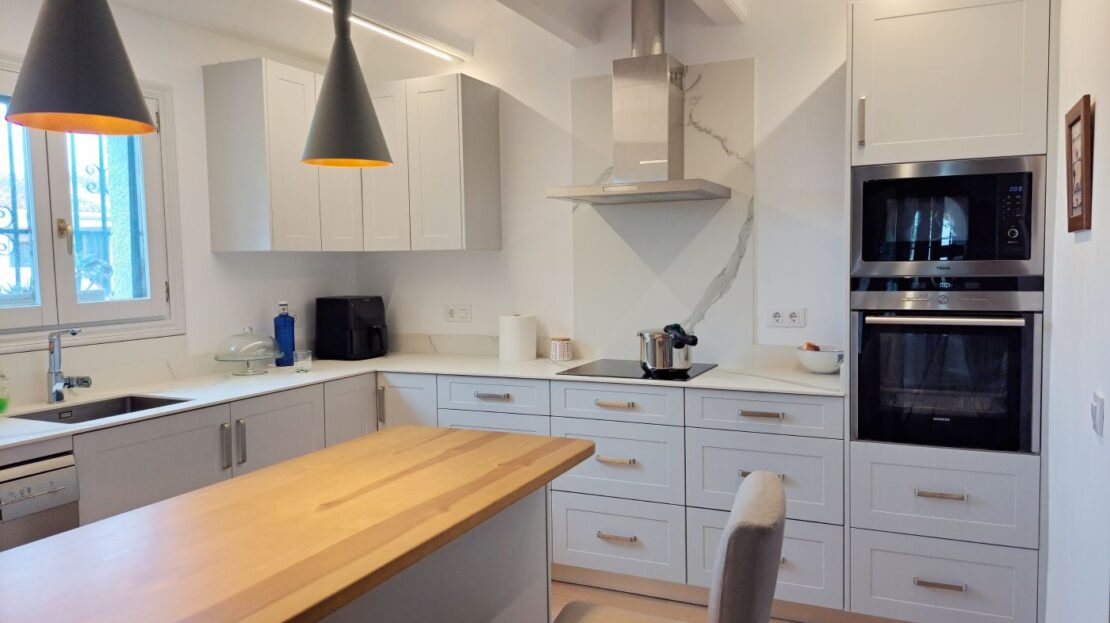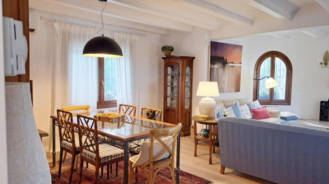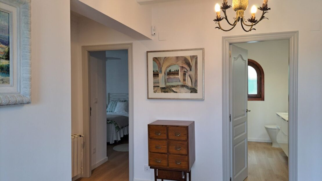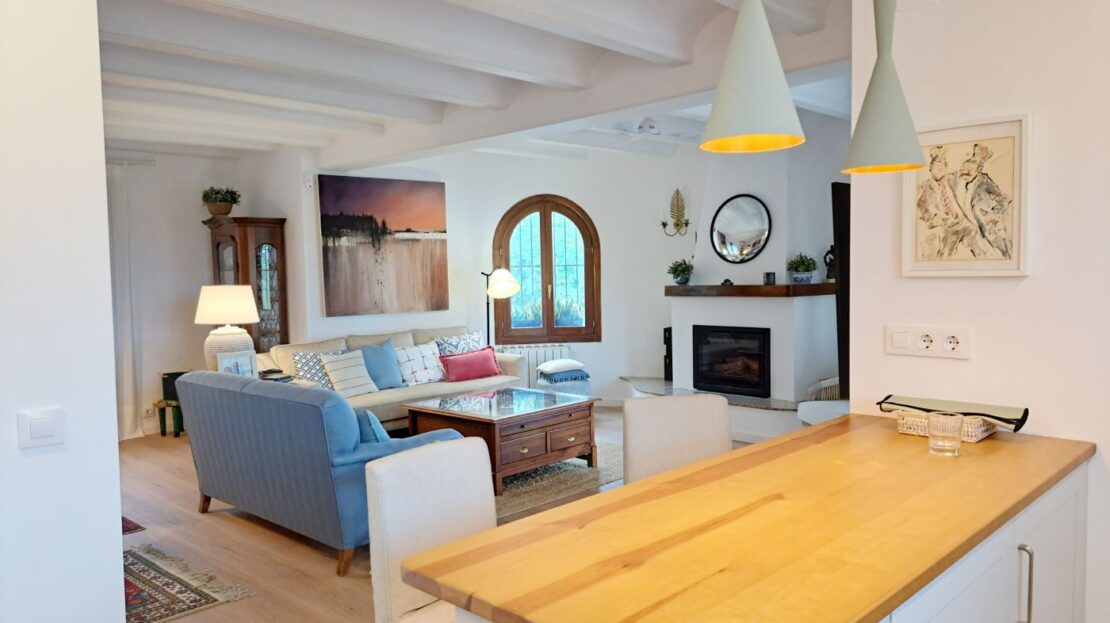 La vivienda ha sido reformada recientemente con un gusto exquisito, ofreciendo un diseño moderno y funcional. Con una superficie de 250 metros cuadrados distribuidos en dos plantas, la planta principal cuenta con un elegante recibidor. El cual da acceso a un espacioso salón comedor con una encantadora chimenea, creando un ambiente cálido y acogedor. La cocina americana, completamente equipada y decorada al detalle, se integra perfectamente con la zona de estar, ofreciendo un espacio abierto y luminoso.