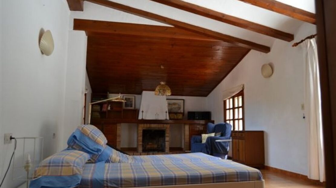 Dispone de estancias amplias, salón comedor con chimenea con suelo de barro y amplia cocina americana equipada con salida directa al jardín, cuarto de lavandería y trastero, escalera con barandilla de madera para acceder a la planta superior, 9 dormitorios con armarios empotrados y techos con vigas de madera, uno de ellos, el principal, con baño en suite, chimenea, vestidor y acceso a una terraza con vistas, además la casa tiene 4 baños (uno de ellos en la piscina) y un aseo.