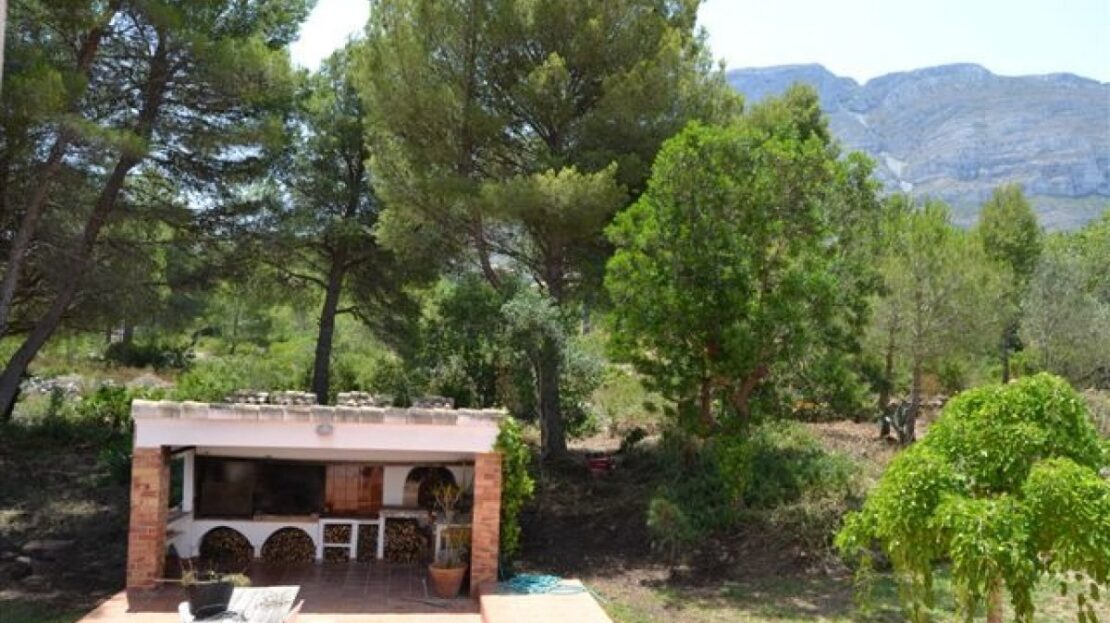 Espectacular villa de 2 plantas con 483 m2 de superficie total (planta baja de 289 m2 + 32 m2 de porche y una planta alta de 194 m2), situada en una parcela de 4.600 m2 de superficie con posibilidad de ampliar, la vivienda tiene mucho espacio y muchas posibilidades, es perfecta como albergue o casa rural y se encuentra situada muy cerca del Montgó y Las Rotas.