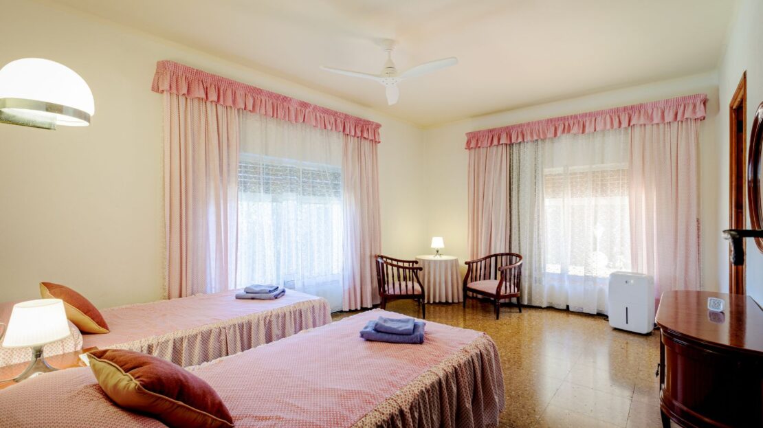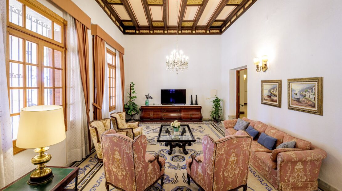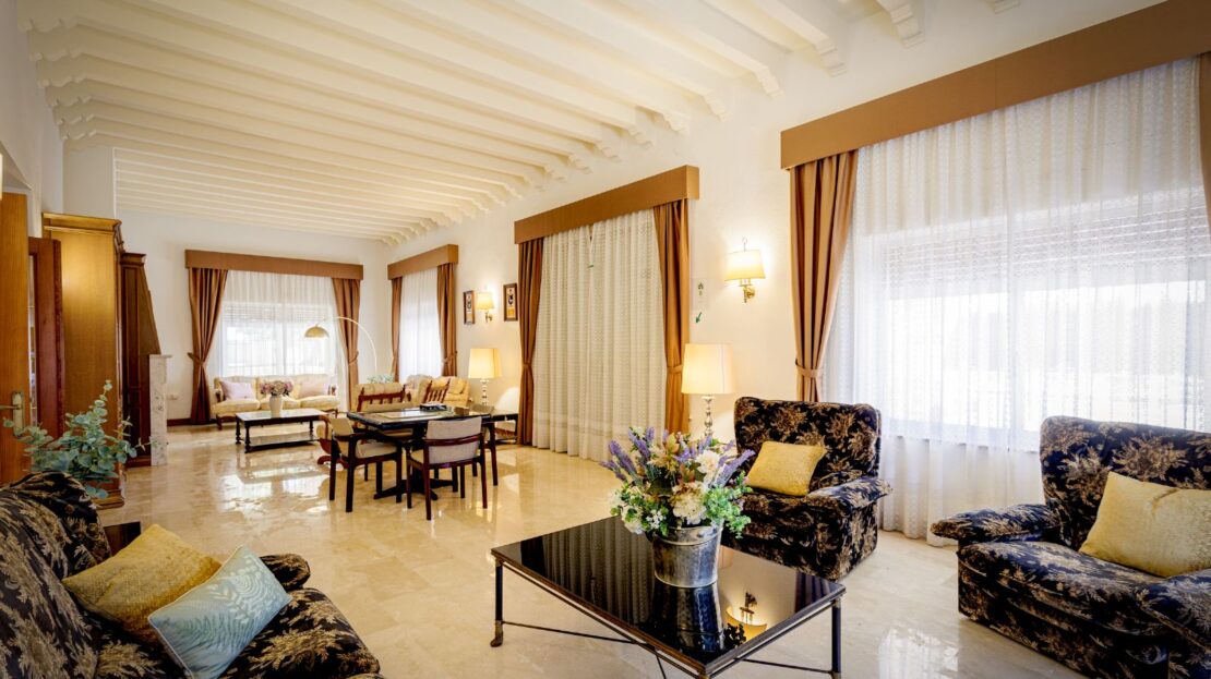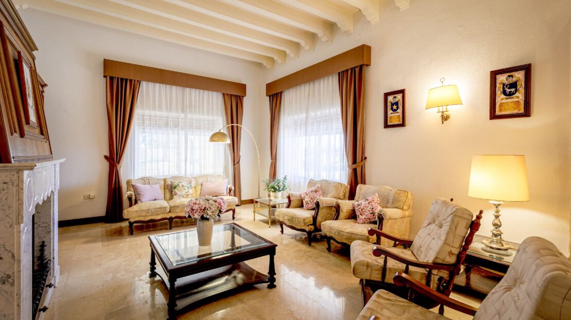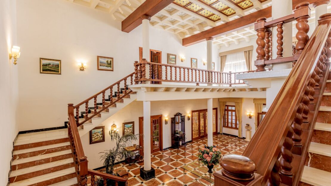 La parcela posee una superficie de 45.000 m². Dentro de la parcela existen dos construcciones, una de ellas, la principal consta de 1.800 m² y dispone de 10 dormitorios, 8 baños, cocina, despacho, varios salones y comedores, 2 grandes terrazas, biblioteca, capilla privada, piscina, etc. Todas las estancias de la vivienda son muy amplias y espaciosas.