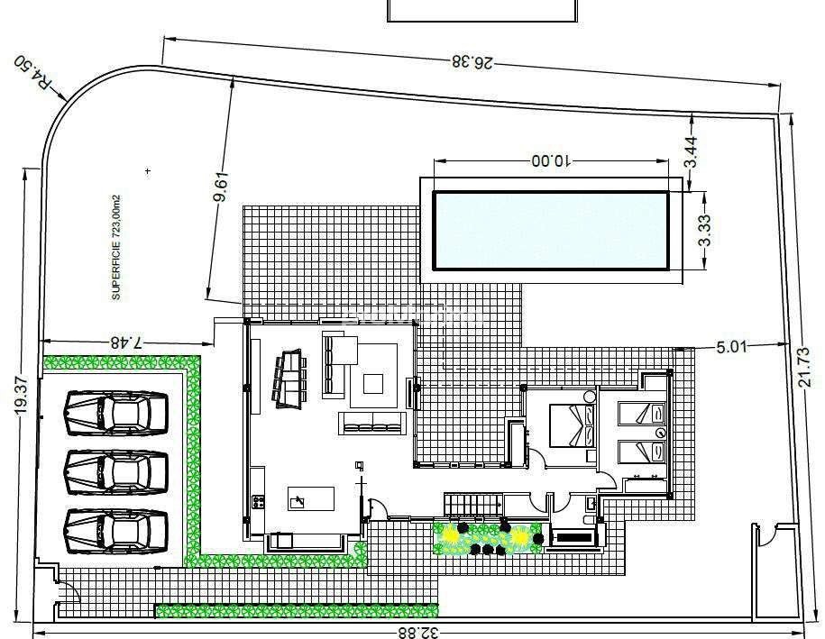 Proyecto de moderno chalet de obra nueva con licencia de obra ya concedida. Este chalet ha sido diseñado destacando su moderno diseño y su práctica distribución.
