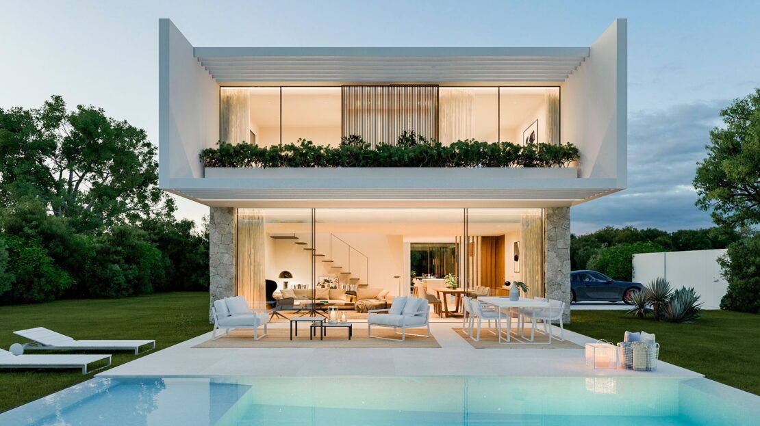 Este proyecto de villa te va a enamorar por su fantástico y moderno diseño, por su práctica distribución y también por su magnífica ubicación, en una zona residencial muy tranquila a tan sólo 10 min a pie del casco urbano.